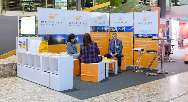 Insbesondere der aufwendig gestaltete Stand kam bei den Messebesucher /-innen gut an. Viele Messebesucher /-innen suchten das Gespräch mit den weitblick-Verantwortlichen und informierten sich über die Arbeit der Kolleginnen und Kollegen.